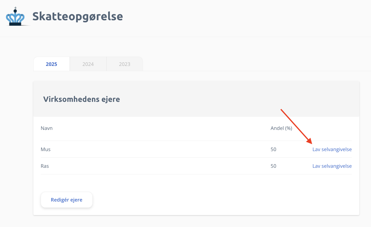Herefter kan I lave indberetning for hver ejer, præcist som vist i videoen ovenfor.