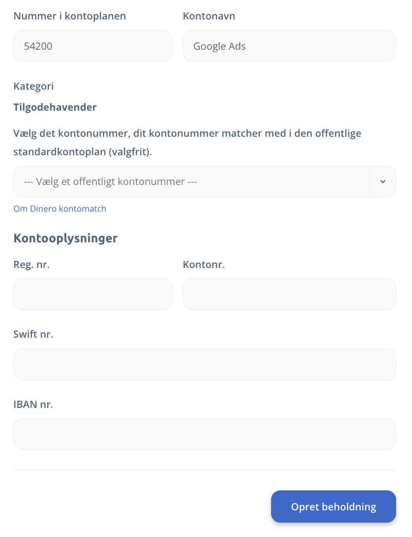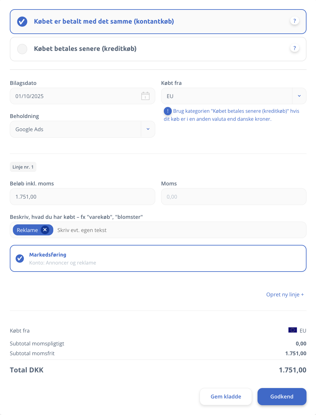 I dette eksempel skal vi bogføre en faktura fra Google Ads.