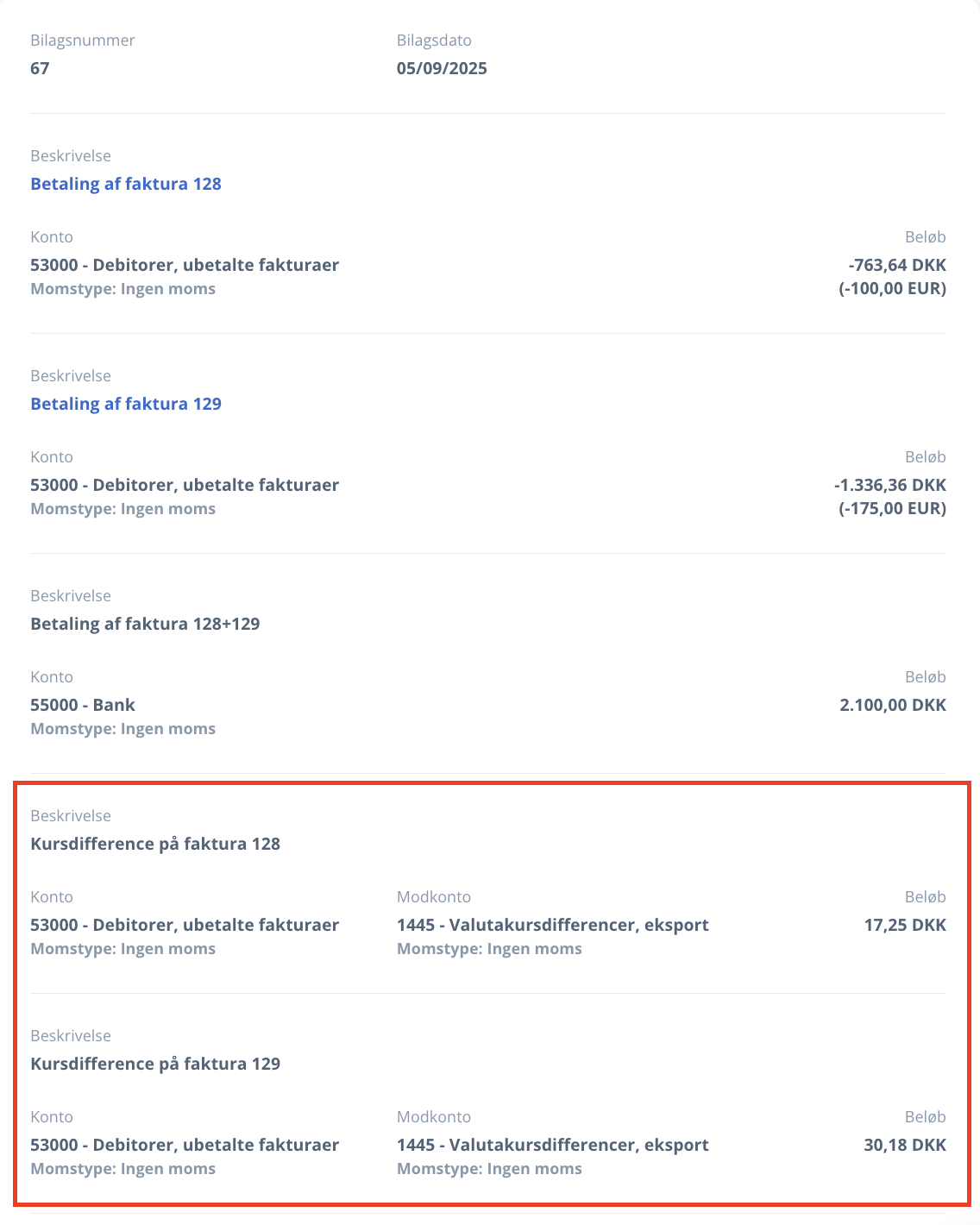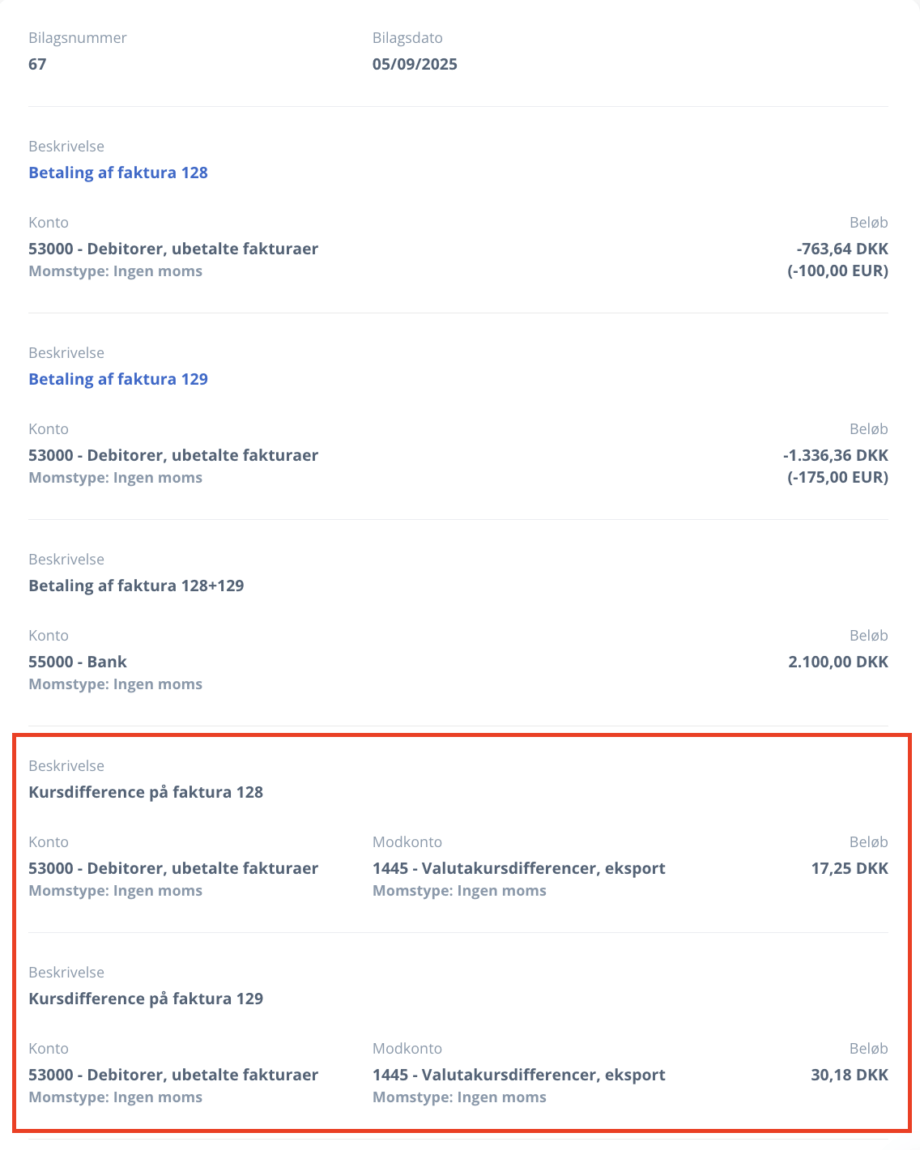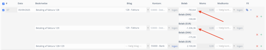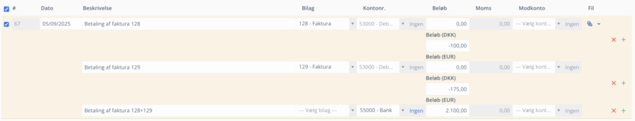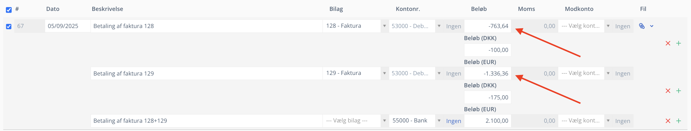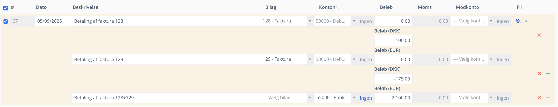Obs.: Husk at alle linjerne skal høre til samme bilagsnummer.