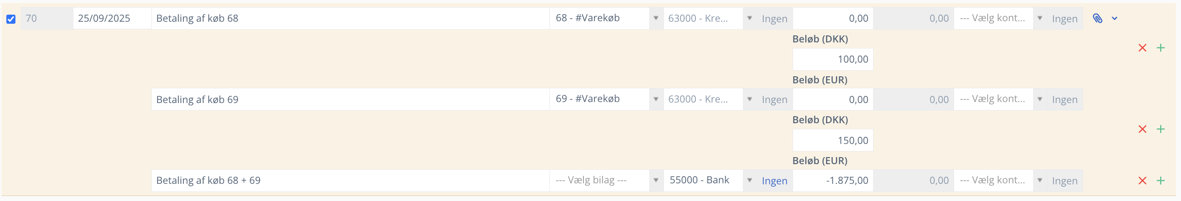 Step 2: Bogføring af den samlede betaling på kreditkøb