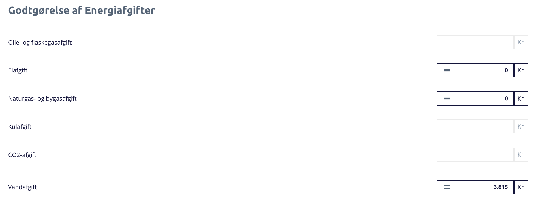 Dinero kan kun medtage vandafgift, el-afgift og naturgas- og bygasafgift på momsopgørelsen, så hvis du har andre afgifter, skal du selv sørge for manuelt at medtage dine andre afgifter, når du indberetter din moms.