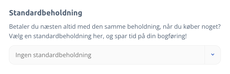 Har du kun én bankbeholdning, som du altid bogfører på? Så har du muligheden for at vælge denne konto som standardbeholdning. Det betyder du fremover kommer til at spare tid med klik, hver gang du bogfører.
