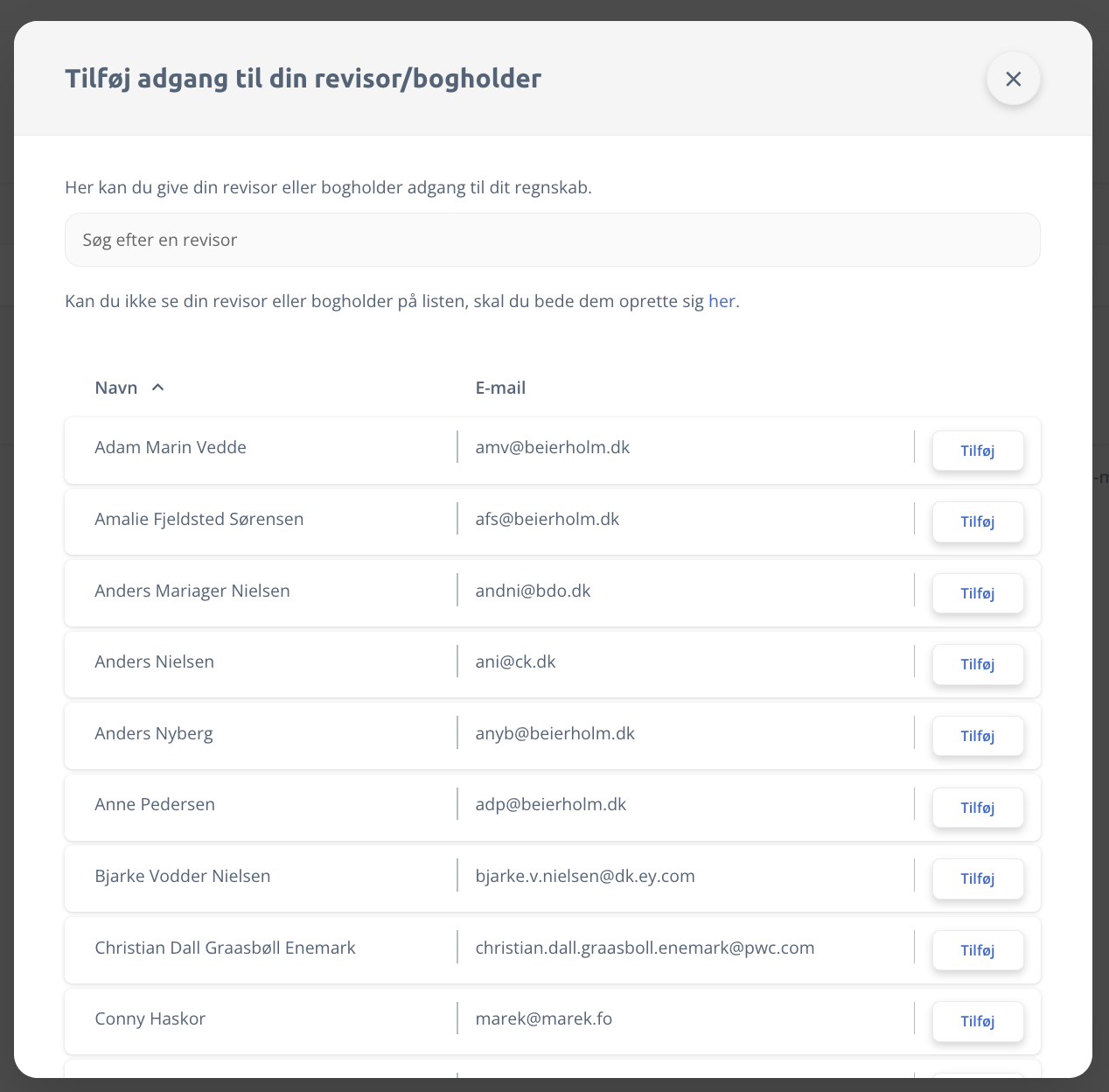 Tilføj ny revisor/bogholder