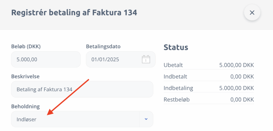 Vi skal nemlig bogføre, at vi flytter pengene fra indløseren og over i banken.