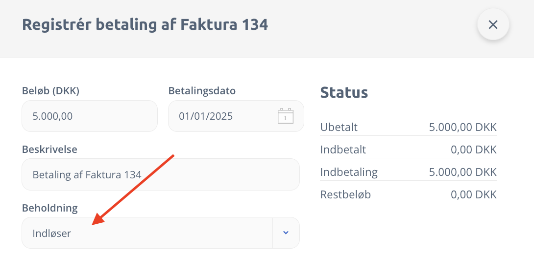 Du kan fint vælge, at købet er betalt med det samme pr. den dato, du bogfører gebyrer.