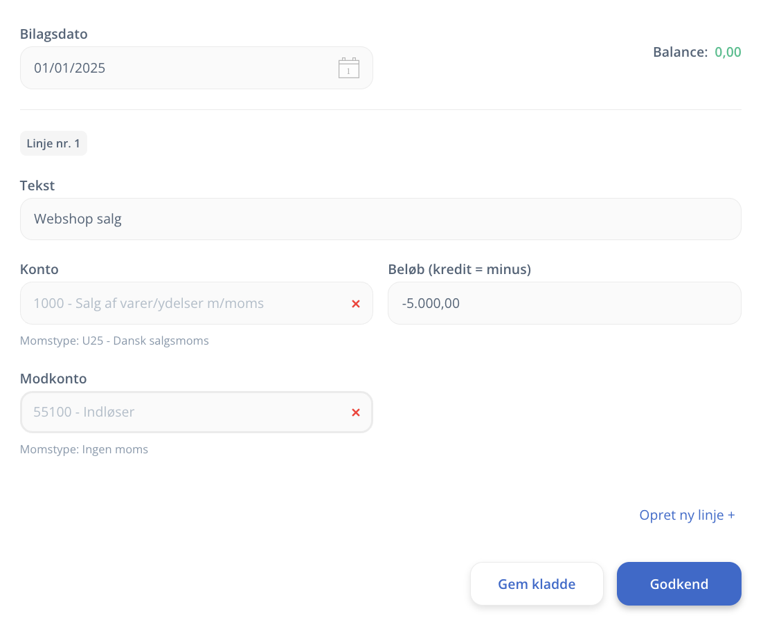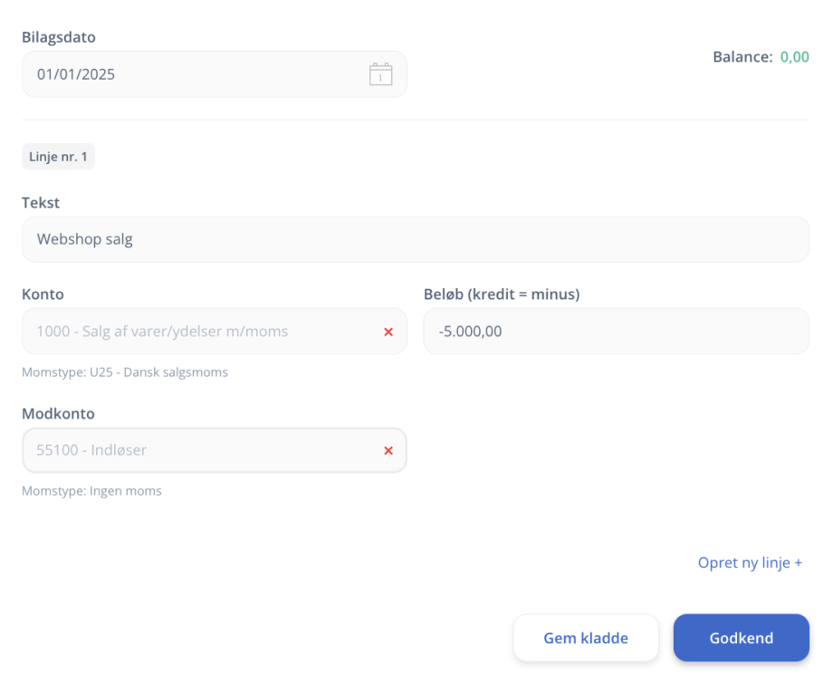På den måde kan du altså få bogført en udgift på 100 kroner i gebyrer, som er modregnet i dit tilgodehavende hos indløseren. Og så er vi faktisk helt i mål.